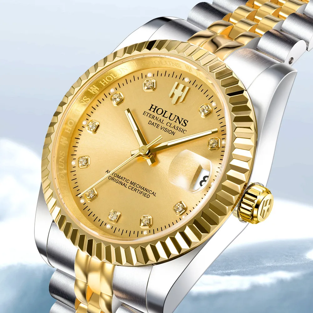 - Sapphire Dial , will never Scratch , skeleton on the back,Solid stainless steel case and strap, vacuum gold plated