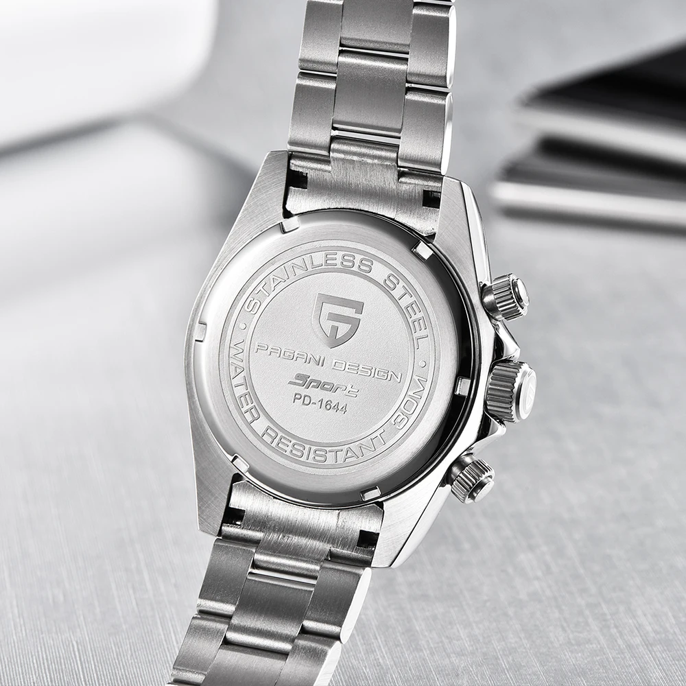 - Experience precision like never before with the Pagani Design PD1644 Men’s Chronograph Watch. Powered by a reliable VK63 Japanese quartz movement, this timepiece offers true chronograph functionality with smooth and accurate timing – no gimmicks, just real performance.